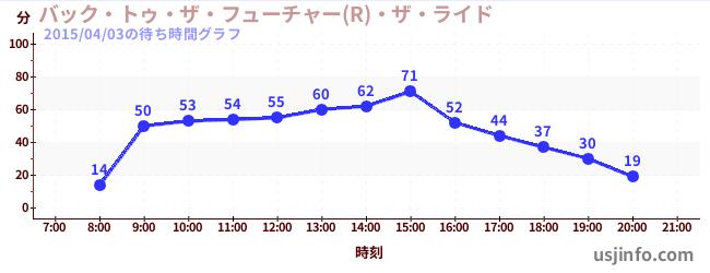 • バック・トゥ・ザ・フューチャー(R)・ザ・ライド$B$N(B2015年04月03日の待ち時間