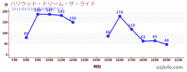 • ハリウッド・ドリーム・ザ・ライド$B$N(B2015年04月03日の待ち時間