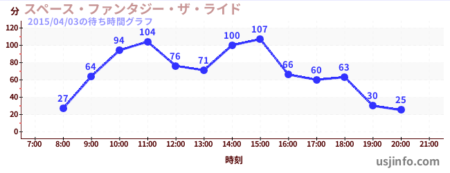 • スペース・ファンタジー・ザ・ライド$B$N(B2015年04月03日の待ち時間