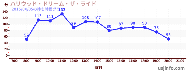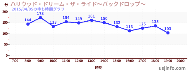 • ハリウッド・ドリーム・ザ・ライド〜バックドロップ〜$B$N(B2015年04月05日の待ち時間