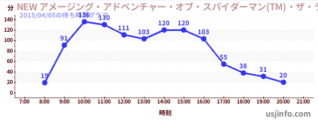 • NEW アメージング・アドベンチャー・オブ・スパイダーマン(TM)・ザ・ライド 4K3D$B$N(B2015年04月05日の待ち時間