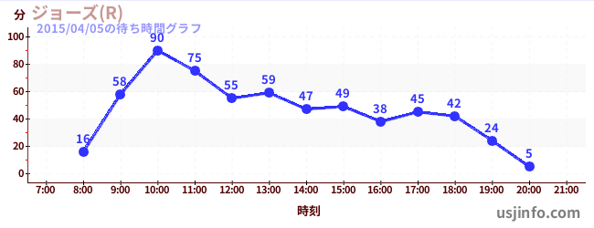 • ジョーズ(R)$B$N(B2015年04月05日の待ち時間