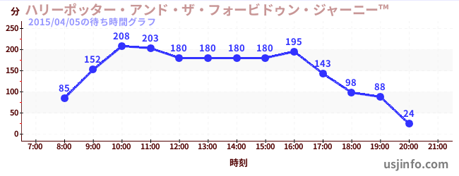 • ハリーポッター・アンド・ザ・フォービドゥン・ジャーニー™$B$N(B2015年04月05日の待ち時間