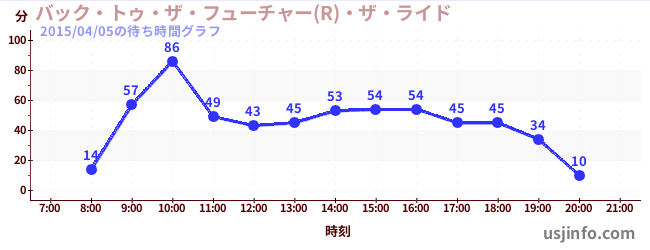 • バック・トゥ・ザ・フューチャー(R)・ザ・ライド$B$N(B2015年04月05日の待ち時間