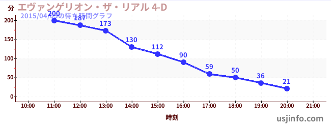 • エヴァンゲリオン・ザ・リアル 4-D$B$N(B2015年04月05日の待ち時間