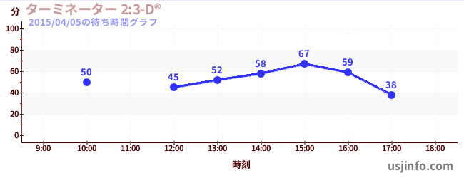 • ターミネーター 2:3-D®$B$N(B2015年04月05日の待ち時間