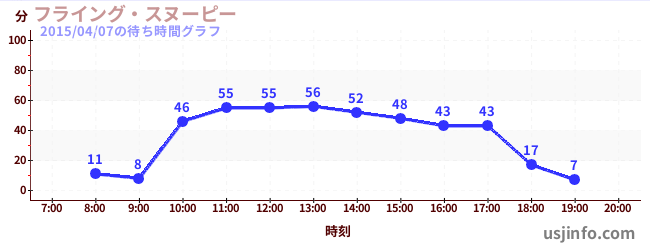 • フライング・スヌーピー$B$N(B2015年04月07日の待ち時間