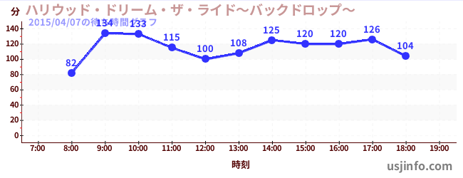 • ハリウッド・ドリーム・ザ・ライド〜バックドロップ〜$B$N(B2015年04月07日の待ち時間