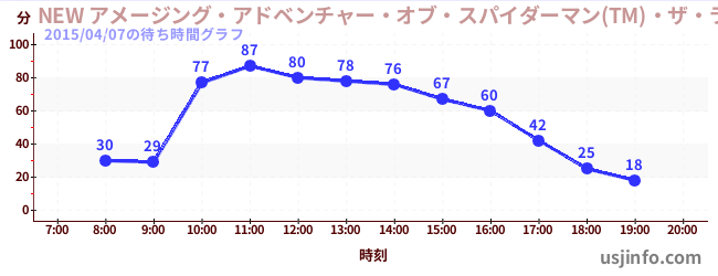• NEW アメージング・アドベンチャー・オブ・スパイダーマン(TM)・ザ・ライド 4K3D$B$N(B2015年04月07日の待ち時間