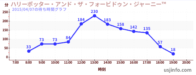 • ハリーポッター・アンド・ザ・フォービドゥン・ジャーニー™$B$N(B2015年04月07日の待ち時間