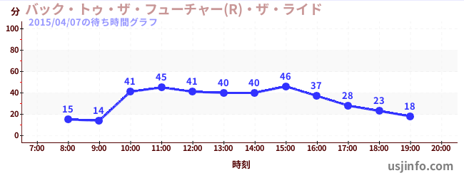 • バック・トゥ・ザ・フューチャー(R)・ザ・ライド$B$N(B2015年04月07日の待ち時間