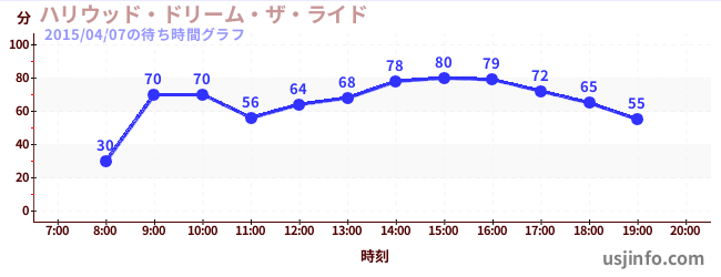 • ハリウッド・ドリーム・ザ・ライド$B$N(B2015年04月07日の待ち時間