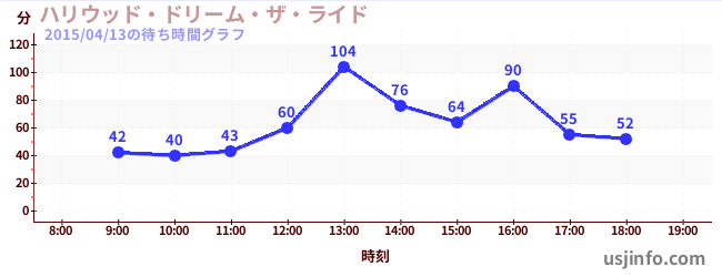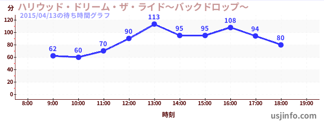 • ハリウッド・ドリーム・ザ・ライド〜バックドロップ〜$B$N(B2015年04月13日の待ち時間