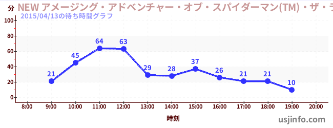 • NEW アメージング・アドベンチャー・オブ・スパイダーマン(TM)・ザ・ライド 4K3D$B$N(B2015年04月13日の待ち時間