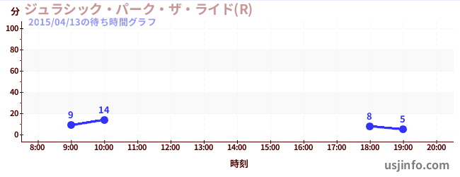 • ジュラシック・パーク・ザ・ライド(R)$B$N(B2015年04月13日の待ち時間