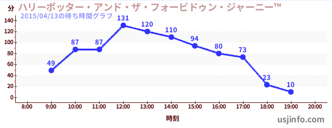 • ハリーポッター・アンド・ザ・フォービドゥン・ジャーニー™$B$N(B2015年04月13日の待ち時間