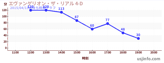 • エヴァンゲリオン・ザ・リアル 4-D$B$N(B2015年04月13日の待ち時間