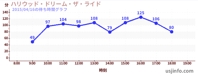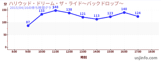• ハリウッド・ドリーム・ザ・ライド〜バックドロップ〜$B$N(B2015年04月16日の待ち時間