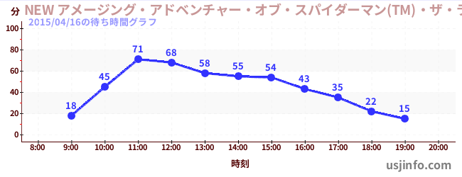 • NEW アメージング・アドベンチャー・オブ・スパイダーマン(TM)・ザ・ライド 4K3D$B$N(B2015年04月16日の待ち時間