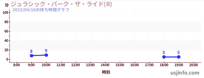 • ジュラシック・パーク・ザ・ライド(R)$B$N(B2015年04月16日の待ち時間