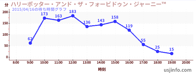 • ハリーポッター・アンド・ザ・フォービドゥン・ジャーニー™$B$N(B2015年04月16日の待ち時間
