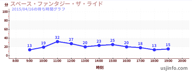 • スペース・ファンタジー・ザ・ライド$B$N(B2015年04月16日の待ち時間