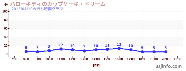 • ハローキティのカップケーキ・ドリーム$B$N(B2015年04月19日の待ち時間