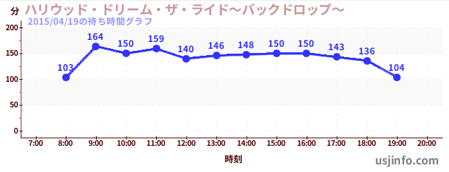 • ハリウッド・ドリーム・ザ・ライド〜バックドロップ〜$B$N(B2015年04月19日の待ち時間
