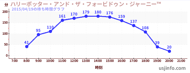 • ハリーポッター・アンド・ザ・フォービドゥン・ジャーニー™$B$N(B2015年04月19日の待ち時間