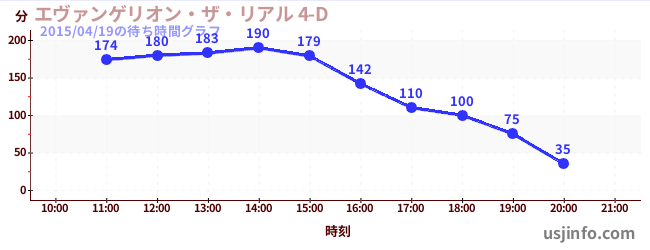 • エヴァンゲリオン・ザ・リアル 4-D$B$N(B2015年04月19日の待ち時間