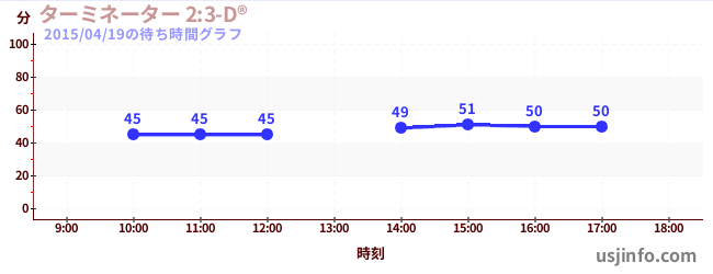 • ターミネーター 2:3-D®$B$N(B2015年04月19日の待ち時間