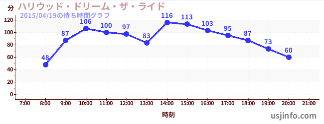 • ハリウッド・ドリーム・ザ・ライド$B$N(B2015年04月19日の待ち時間