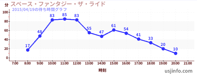• スペース・ファンタジー・ザ・ライド$B$N(B2015年04月19日の待ち時間