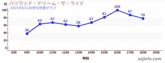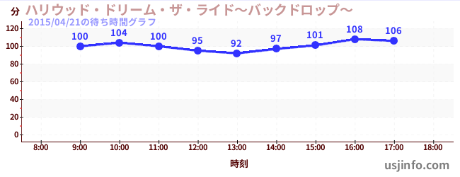 • ハリウッド・ドリーム・ザ・ライド〜バックドロップ〜$B$N(B2015年04月21日の待ち時間