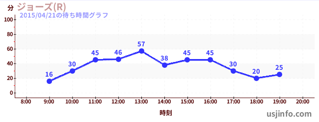 • ジョーズ(R)$B$N(B2015年04月21日の待ち時間