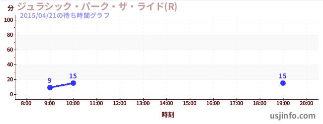 • ジュラシック・パーク・ザ・ライド(R)$B$N(B2015年04月21日の待ち時間