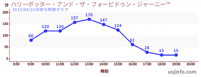 • ハリーポッター・アンド・ザ・フォービドゥン・ジャーニー™$B$N(B2015年04月21日の待ち時間