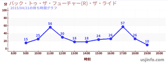 • バック・トゥ・ザ・フューチャー(R)・ザ・ライド$B$N(B2015年04月21日の待ち時間