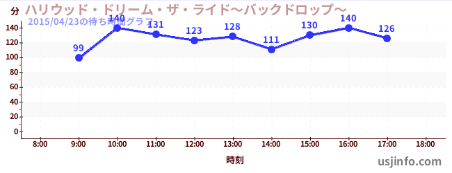 • ハリウッド・ドリーム・ザ・ライド〜バックドロップ〜$B$N(B2015年04月23日の待ち時間