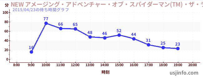 • NEW アメージング・アドベンチャー・オブ・スパイダーマン(TM)・ザ・ライド 4K3D$B$N(B2015年04月23日の待ち時間