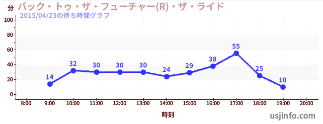 • バック・トゥ・ザ・フューチャー(R)・ザ・ライド$B$N(B2015年04月23日の待ち時間