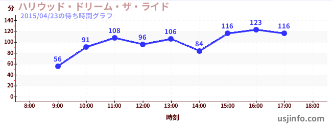 • ハリウッド・ドリーム・ザ・ライド$B$N(B2015年04月23日の待ち時間