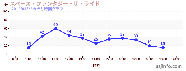 • スペース・ファンタジー・ザ・ライド$B$N(B2015年04月23日の待ち時間