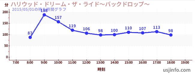 • ハリウッド・ドリーム・ザ・ライド〜バックドロップ〜$B$N(B2015年05月01日の待ち時間