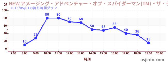 • NEW アメージング・アドベンチャー・オブ・スパイダーマン(TM)・ザ・ライド 4K3D$B$N(B2015年05月01日の待ち時間
