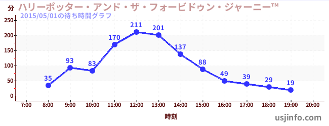 • ハリーポッター・アンド・ザ・フォービドゥン・ジャーニー™$B$N(B2015年05月01日の待ち時間