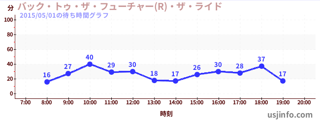 • バック・トゥ・ザ・フューチャー(R)・ザ・ライド$B$N(B2015年05月01日の待ち時間