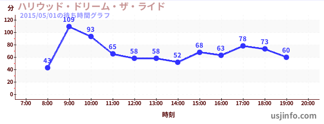 • ハリウッド・ドリーム・ザ・ライド$B$N(B2015年05月01日の待ち時間