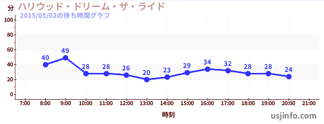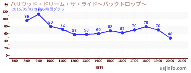 • ハリウッド・ドリーム・ザ・ライド〜バックドロップ〜$B$N(B2015年05月02日の待ち時間