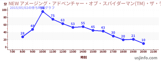 • NEW アメージング・アドベンチャー・オブ・スパイダーマン(TM)・ザ・ライド 4K3D$B$N(B2015年05月02日の待ち時間
